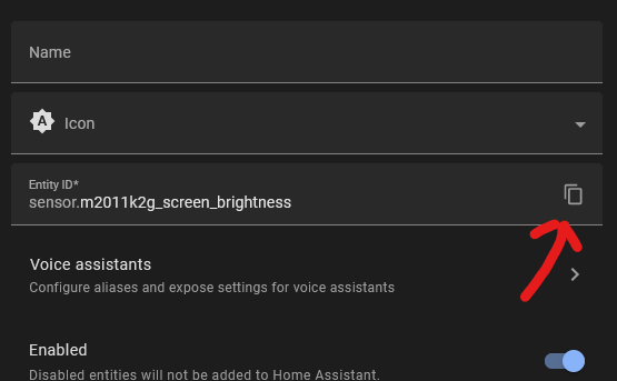 7. Click the copy icon in the Entity ID field:
